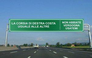 Così più di qualcuno interpreta questi consigli come una licenza incondizionata per occupare a velocità bassissime la corsia centrale o persino quella di sorpasso mentre davanti a lui ci sono centinaia di metri di carreggiata liberi.