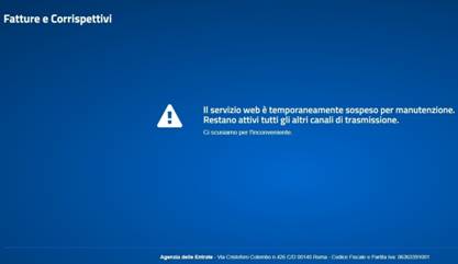 Intanto ancora fino ad oggi sulla home page della piattaforma online per inviare i dati di liquidazioni Iva, fattura elettronica, e fatture emesse e ricevute, appare la scritta: