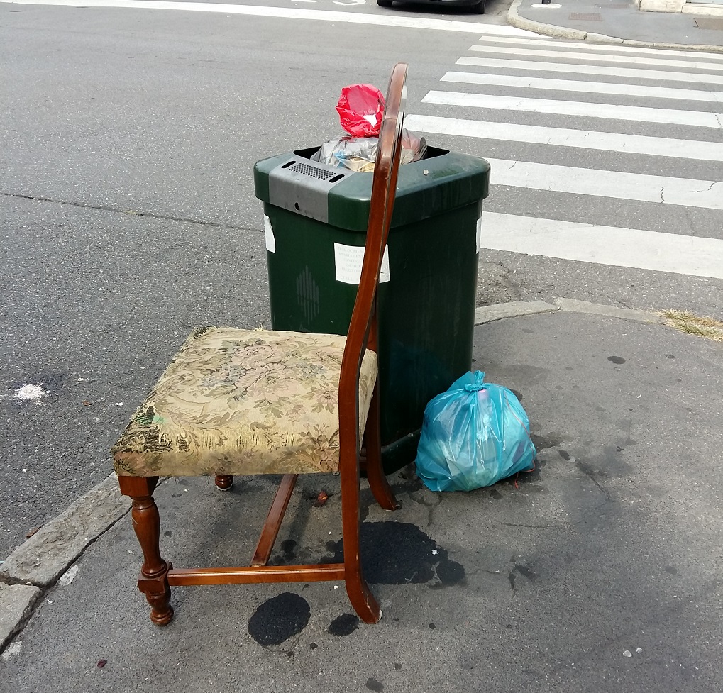 In ogni caso la scorsa settimana il divano abbandonato su un marciapiede ed i mobili su quell’altro e ieri è arrivata una sedia. Se va avanti così si potrebbe aprire una rivendita di mobili usati…