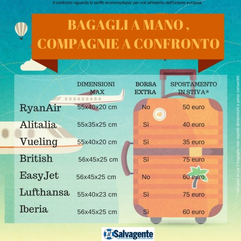 Fonte & dettagli Bagagli a mano, dal 1 novembre la stretta di Ryanair. Il confronto con le altre compagnie | il Salvagente