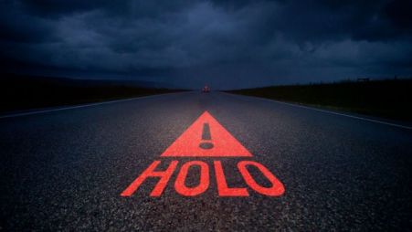 Una volta acceso Holo proietta sull’asfalto, fino a 30 metri di distanza, un “triangolo” bello grande misura 1 m x 1 m – che non solo è color rosso acceso ma include il punto esclamativo che dice PERICOLO ed è anche lampeggiante.