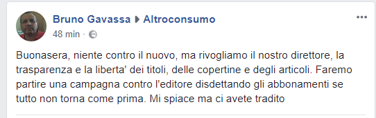 Sono un socio storico di Altroconsumo, ma questa cosa del licenziamento in tronco del direttore non mi piace affatto, tanto più dopo aver letto le dichiarazioni in merito alle ragioni del licenziamento, peraltro non smentite dall’Editore.