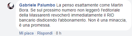 Non mi si dica che non si poteva concordare un’uscita morbida della Massarenti e, magari, consentendo alle parti di spiegarsi con gli abbonati che, come si legge anche sulla Pagina Fb della rivista, stanno dichiarando l’intenzione di dissociarsi.