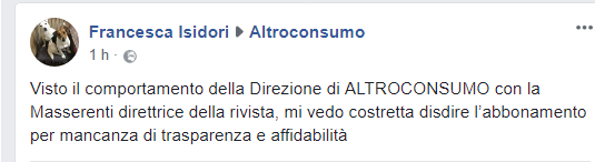 Testimonianze tratte dalla Pagina FB di Altroconsumo