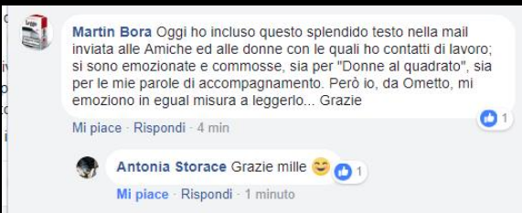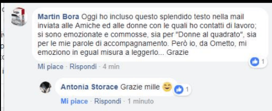 Io stesso, da Ometto, mi sono emozionato a leggerlo, cosa questa che mi ha spinto a ringraziare l’autrice.