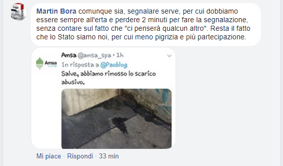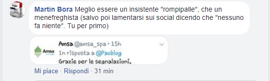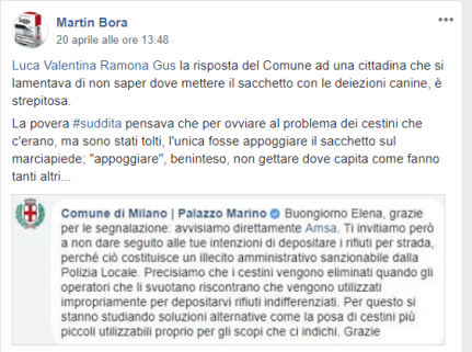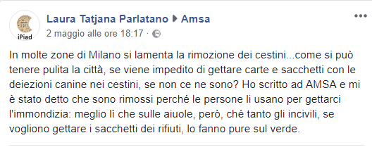 Dopo di che, senza togliere ad Amsa le colpe per la mancanza dei cestini, perlomeno se segnali, poi intervengono in tempi brevi.