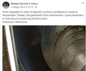 Capiamoci, non faccio le segnalazioni per ricevere un ringraziamento, ma dato che la responsabilità di questa situazione di degrado è attribuibile anche al Comune oltre che agli Incivili, sarebbe bello se ogni tanto, oltre a risposte assurde e punitive, si facessero sentire.