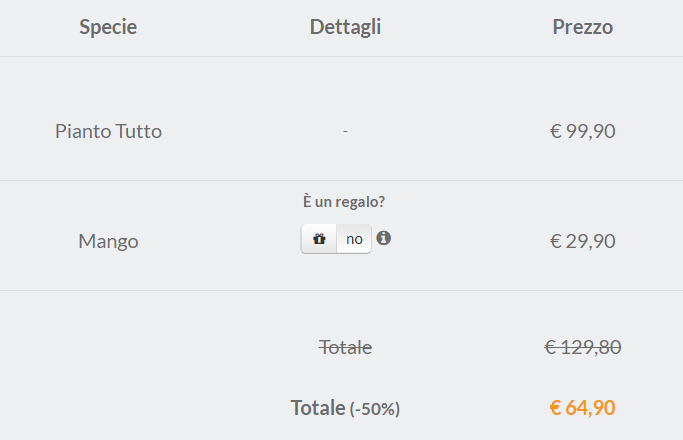 (Nell’elenco ci sono 11 alberi, ma in realtà dato che ne avevo uno già acquistato e non “assegnato”, ho pareggiato i conti, in modo che ognuno ne avesse uno a suo nome.)
