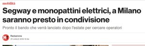Leggo che il Comune di Milano sta preparando il bando per offrire segway, hoverboard e monopattini in condivisione.