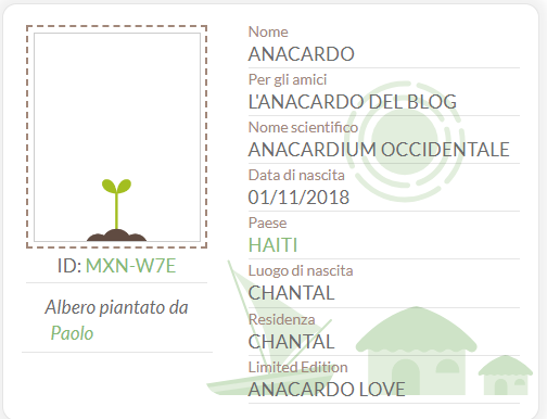 Al bosco del Blog bisogna aggiungere due alberi e più esattamente un albero di Mango ed uno di Anacardo che ci permetteranno di assorbire 1000 kg. di CO2.