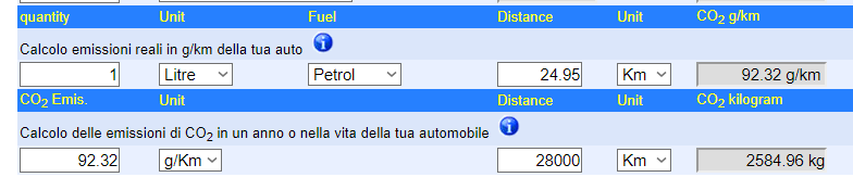 Tanto per dare un parametro di riferimento, vista la media di consumo dell’ibrida di 24,95 km/lt., per percorrere 28.000 km. annui emetto 2588 Kg. di CO2.