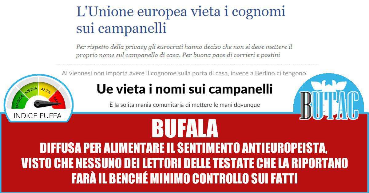 “Nei giorni scorsi è stata fatta circolare, con fonte Italia Oggi, la notizia che l’Unione europea avrebbe vietato di inserire nome e cognome sui campanelli dei condomini, in merito a una non ben precisata legge sulla privacy.