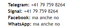 Fatte le debite considerazioni Miro ha avanzato l’idea di chiedere a qualcuno che ne sa più di noi ed allora gli ho fatto notare che Paolo Attivissimo ci capisce di informatica e se lui alla voce Contatti sul suo Blog scrive Whatsapp: anche no e per Telegram, mette il suo numero… qualcosa vorrà dire.