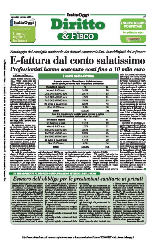 Leggo di consumatori cui è stato richiesto un supplemento di prezzo per l’emissione della fattura elettronica.