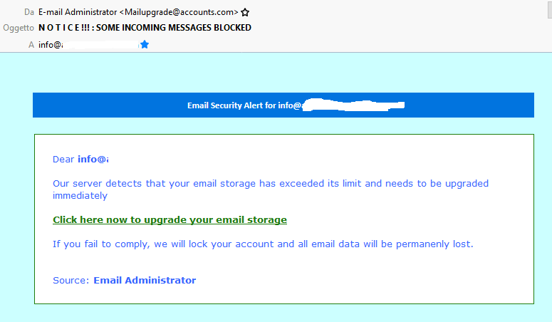 Se tu fossi realmente il mio fornitore di posta elettronica, avresti scritto (in italiano, peraltro) al mio indirizzo reale. 😉
