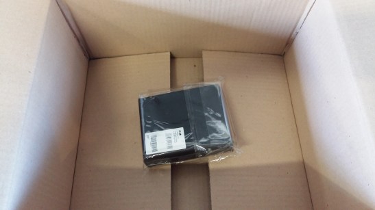 Ieri è arrivato il portafoglio acquistato in sostituzione di quello che ha preso il volo sabato scorso, ma quando è arrivato l’autista di DHL sono rimasto spiazzato una volta vista la scatola che, detto per inciso, era di cm. 40 x 33 x 18.