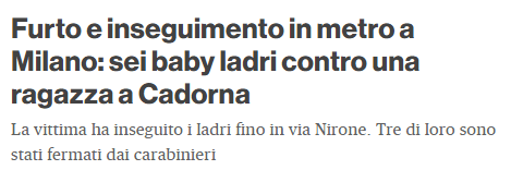 Non è bello dover vivere (e ragionare) così, ma checche’ ne dicano il Sindaco Sala e le Autorità, Milano non è una città veramente sicura.
