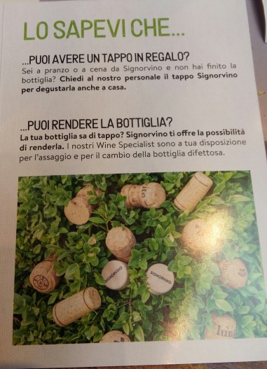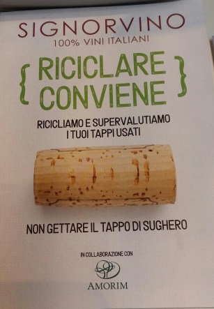 Un mese fa, da Signorvino il cassiere mi informava dell’iniziativa in corso per incenticare il riciclo dei tappi in sughero.