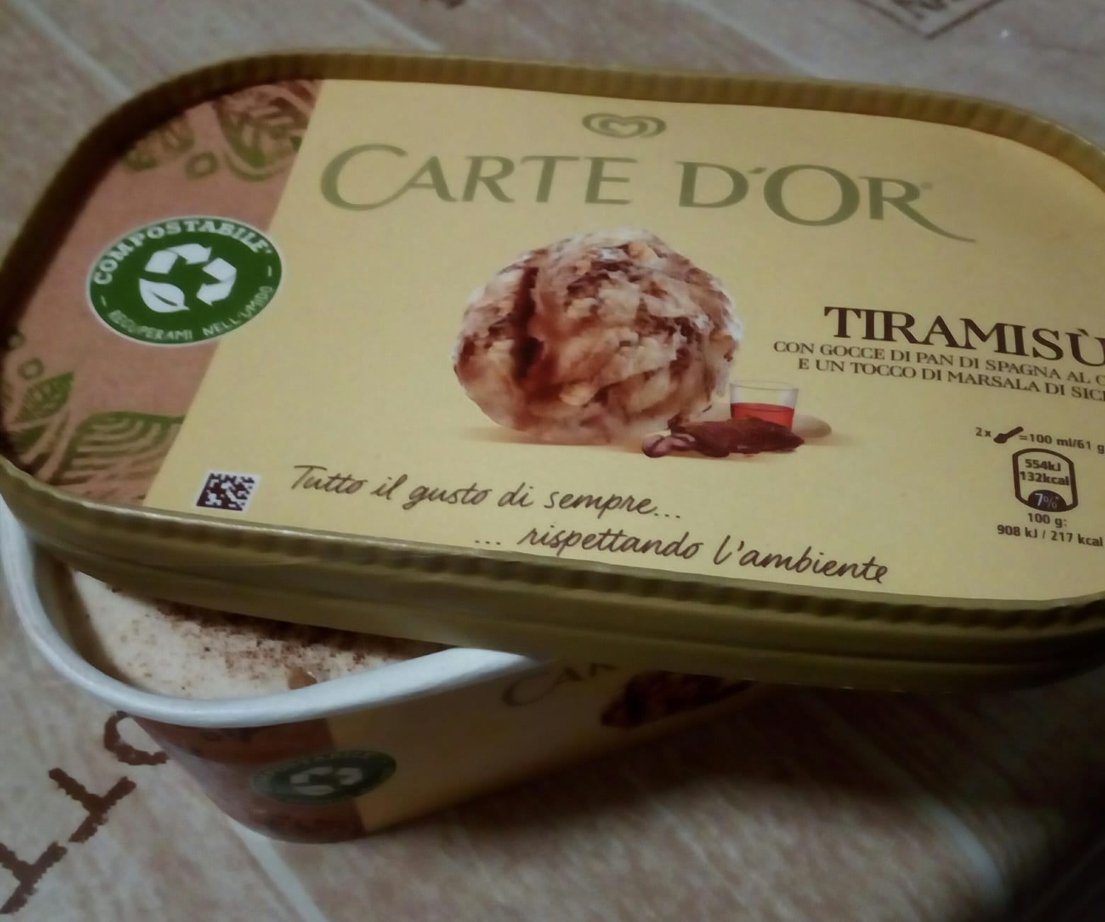 Ieri sera un’amica mi manda una foto della vaschetta di gelato appena aperta dopocena: