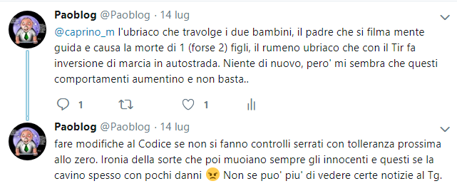 Nei giorni scorsi, dopo l’incidente con i bambini travolti (ed uccisi) dal pregiudicato ubriaco e drogato, seguito poi da quello con il padre che si filma mentre guida e replica un film appena visto, con il conseguente incidente ed assassinio dei suoi stessi figli, sono esploso, con un commento su Twitter poi replicato su Instagram dove non riesco a non pubblicare quello che mi sta a cuore, oltre che a delle “semplici” foto.