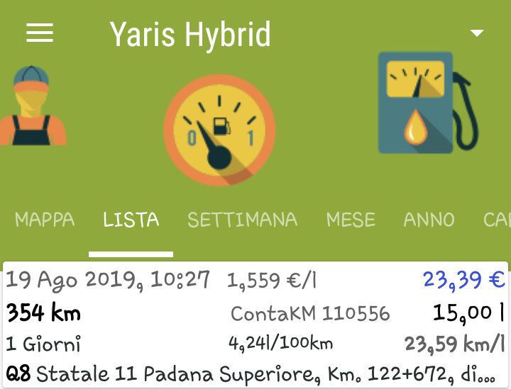 Qui si parla di consumi reali in condizioni di utilizzo normale. Le medie di consumo sono state ricavate utilizzando la App Ilpieno2.