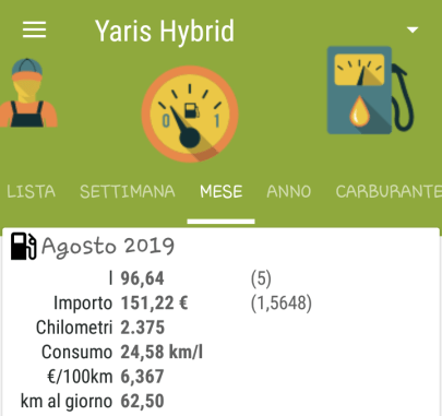 Oggi però posso analizzare al meglio il consumo dell’intero mese che, visto il periodo di vacanze, ha portato ad una percorrenza maggiore del solito, tanto più in autostrada.
