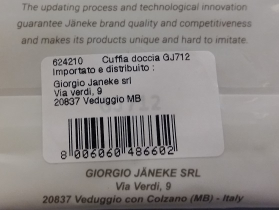 Sabato mia mamma ha comprato alcune cuffie per doccia della ditta Giorgio Janeke S.r.l. con in evidenza la dicitura Made in Italy