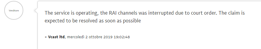 Aggiornamento del 21 ottobre 2019: Il reclamo è andato a buon fine, ma devo ringraziare Paypal e non certo Vcast.