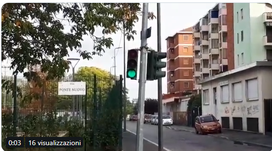 A Milano, via del Ricordo/Ponte Nuovo ecco un semaforo che passa dal rosso al verde, senza mezzo secondo per il giallo.
