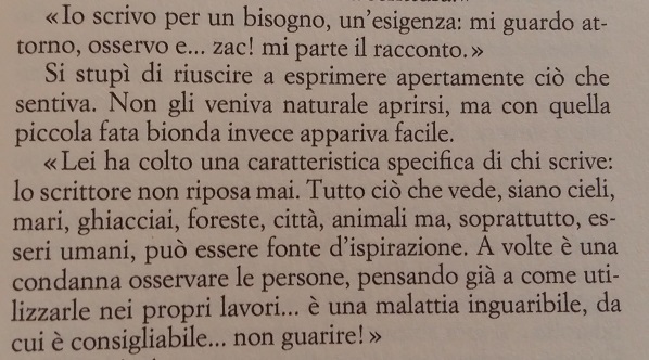 Il pensiero della Dottoressa Marlena ha colto nel segno, perchè è proprio vero che osservo tutto e mi ritrovo spesso a fantasticare e costruire trame agganciandomi a quello che vedo…