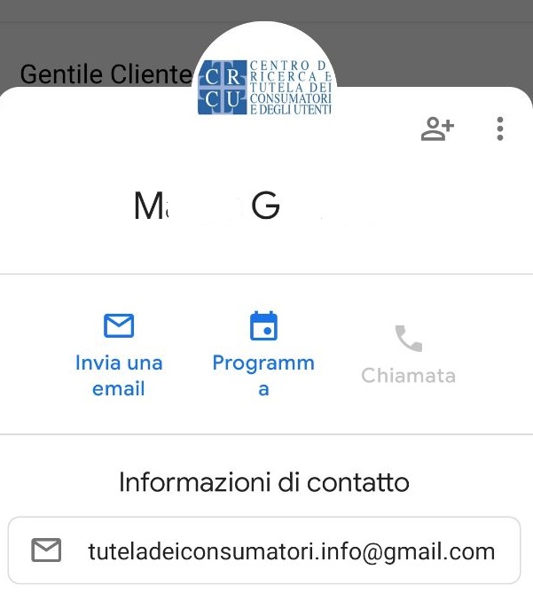 Vista la comunicazione ricevuta con tanto di marchio (vedi Foto 2) ho verificato sul web che il “Centro di ricerca e tutela dei consumatori e degli utenti” esiste, tuttavia è anomalo che facciano da tramite per offrire contratti telefonici di Fastweb e Wind.