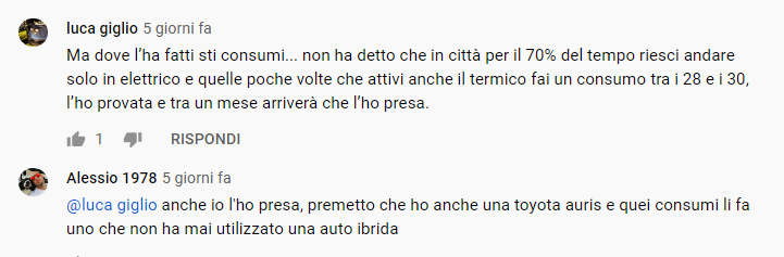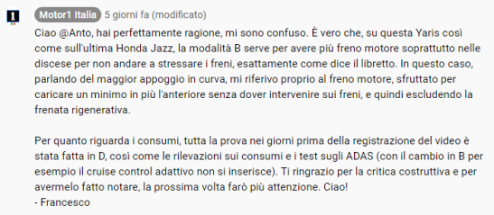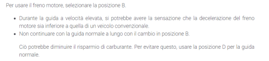 Leggendo i commenti sul Canale, ecco quello che giustamente contesta sia la posizione B del cambio sia i consumi…