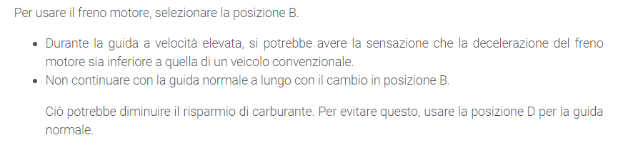Chi ha appena preso un’ibrida Toyota sappia che la B non si deve usare nella marcia normale.