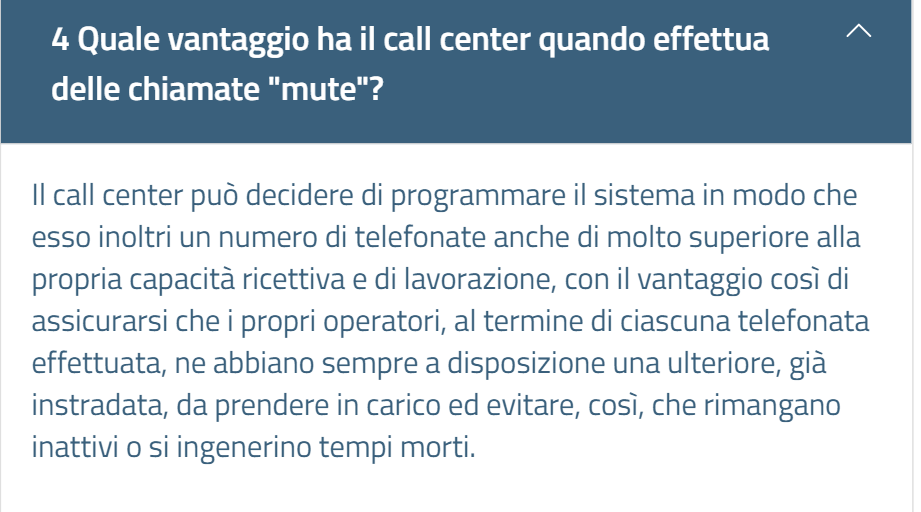 D’altro canto il punto 4 delle FAQ chiarisce al meglio perchè i call center facciano le telefonate muta. Per non perdere tempo…che però fanno perdere a te.