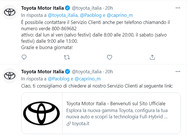 Dopo le lamentele esposte su Twitter ha risposto Toyota, ma che cosa vuoi che mi dica il Servizio Clienti per un’auto decisamente fuori garanzia?