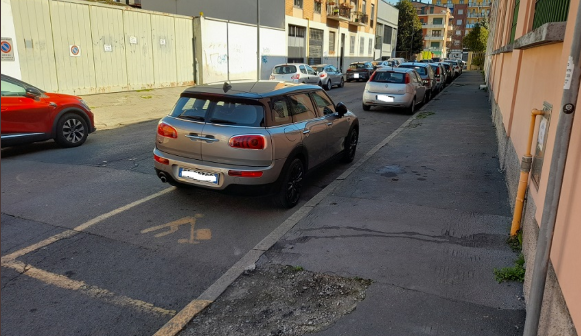 Non solo parcheggia nell’area di scarico, ma si mette esattamente in mezzo, in modo da rompere i coglioni alla massima potenza e rendere inservibile l’area; ma QUANTO bisogna essere incivili ed ottusi per agire così?