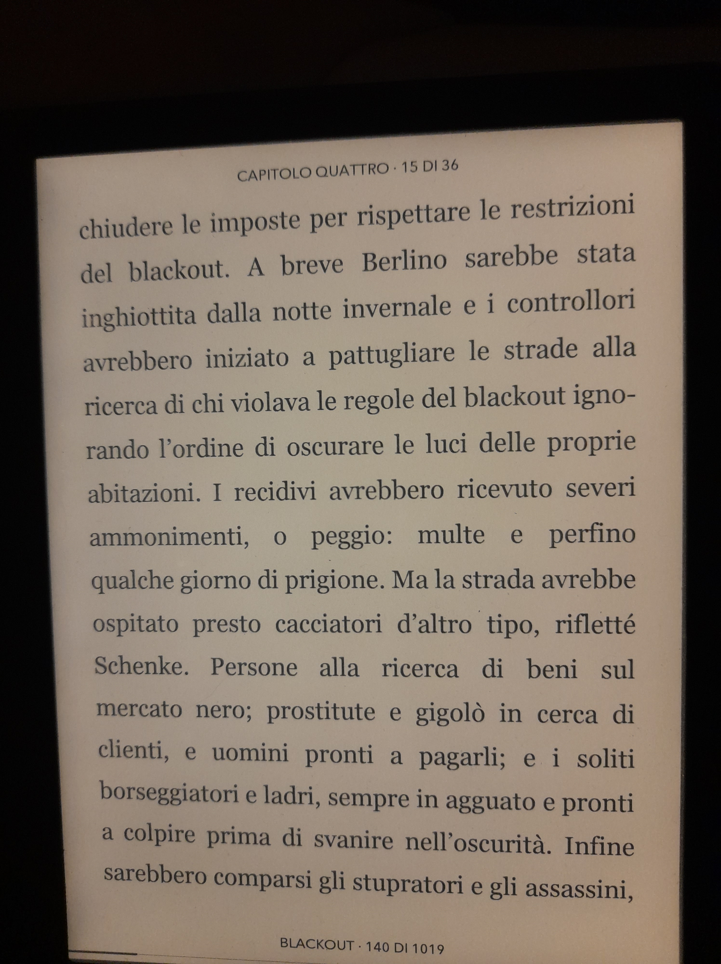Nota a margine: Blackout è il titolo originale ed il termine ha più significati: Oscuramento totale di una città o di parte di essa, provocato da un guasto dell’impianto d’illuminazione o deciso per motivi bellici o in casi di emergenza .