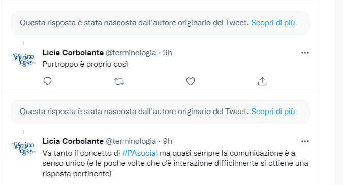 Il commento di Licia Corbolante in proposito è lapidario: Pessima abitudine di chi gestisce il profilo di