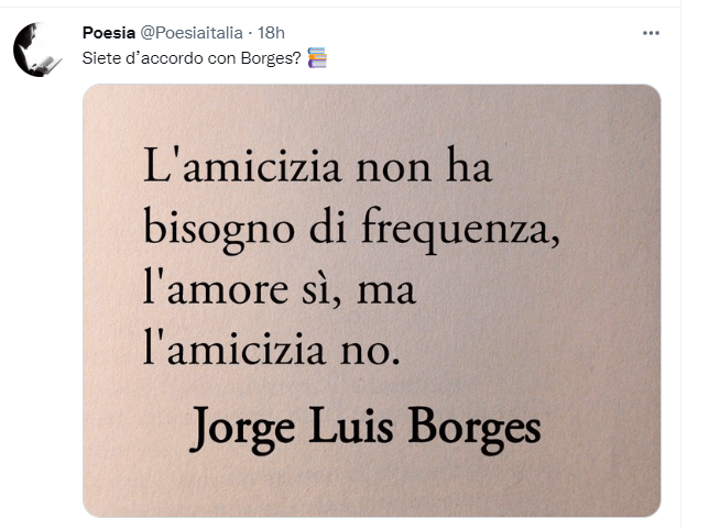 Giorni fa su Twitter ho letto una citazione di Jorge Luis Borges, pubblicata da @Poesiaitalia
