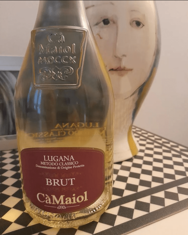 Lo sguardo di Clelia cade su una bottiglia di Lugana Brut che mi ha regalato oggi l’Amica Luisa detta Rimba 😉