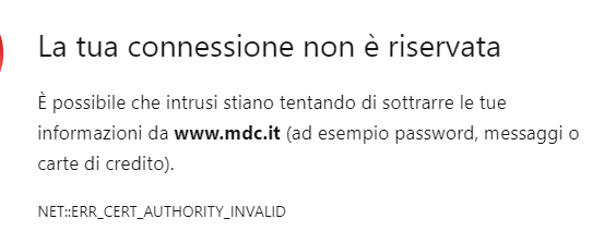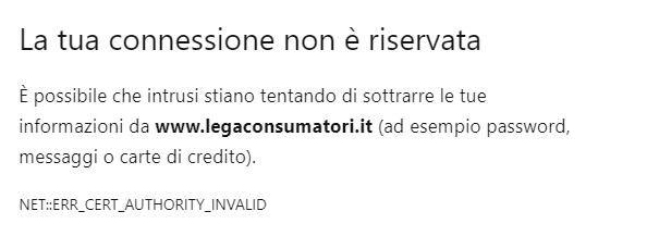 Queste sono le associazioni che hanno qualche problema di sicurezza al sito; non dovendo inserire nessun dato o informazione personale o bancaria, avrei potuto forzare l’accesso al sito, al fine di ricavare le informazioni necessarie a scrivere il post, tuttavia il sito è come un biglietto da visita e se si parte male, non ho interesse a proseguire.