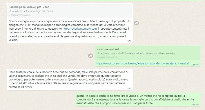 Pubblico lo scambio di battute fra venditore ed acquirente di un’auto usata; in questo caso il venditore è persona attenta e, al solito, il truffatore fa il finto tonto.