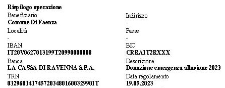 “Raccolta fondi per l’emergenza alluvione nel territorio faentino, per dare sostegno alle famiglie e alle realtà più colpite.