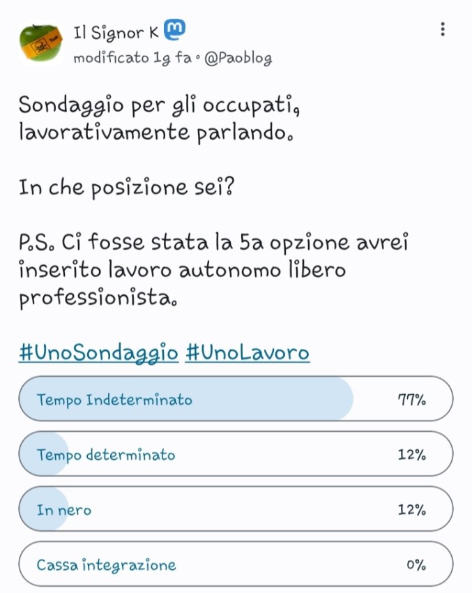La comodità di avere risposte anonime ai sondaggi su Mastodon, spinge gli utenti a dire le cose come stanno, per cui puoi chiedere se lavorano in nero o quanto prendono di stipendio ed ottenere risposta.