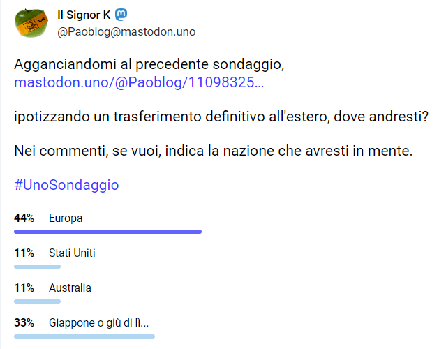 Questa volta ho replicato su Mastodon e la percentuale di chi ha detto SI è aumentata