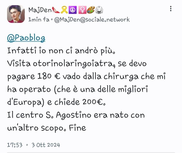 Ed infatti, prima sul sito di S. Agostino evidenziavano, oltre alla rapidità delle prestazioni, anche il costo accessibile a molti cittadini.