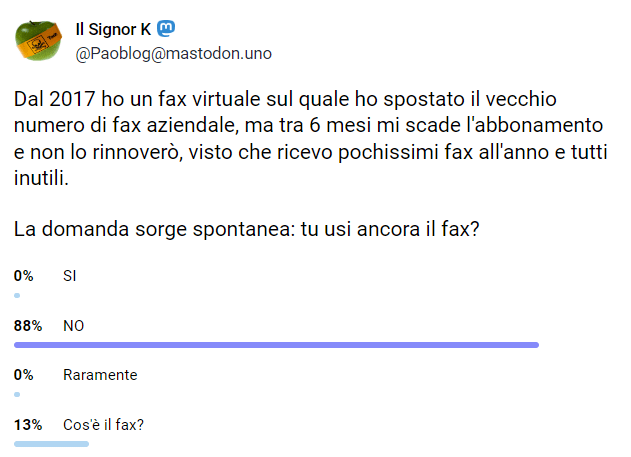 Va da sè che sfrutto i sondaggi su Mastodon ed il risultato conferma il mio sentire…
