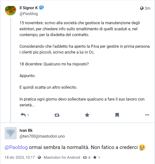 Eppure eccone un altro, che alla fine, dopo l’ennesimo sollecito, ha risposto, ma come dice Ivan BK, questo modo di fare è la normalità, cosa che mi è stata confermata giorni fa dall’amica Enne che è passata a trovarmi.