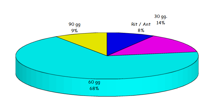 Questo grafico rappresenta i pagamenti del 2023, con solo il 9% a 90 gg.; una volta era di più, tuttavia mi sono preso qualche rischio e mi sono impuntato.