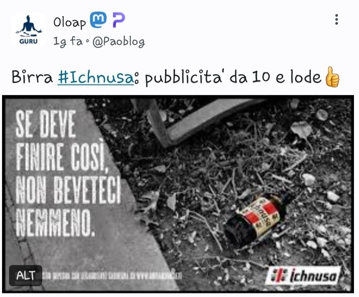 Lo spot Ichnusa è degno di nota, una Pubblicità Progresso, in pratica e quindi oggi al super ho preso 2 bottiglie, per premiarli.